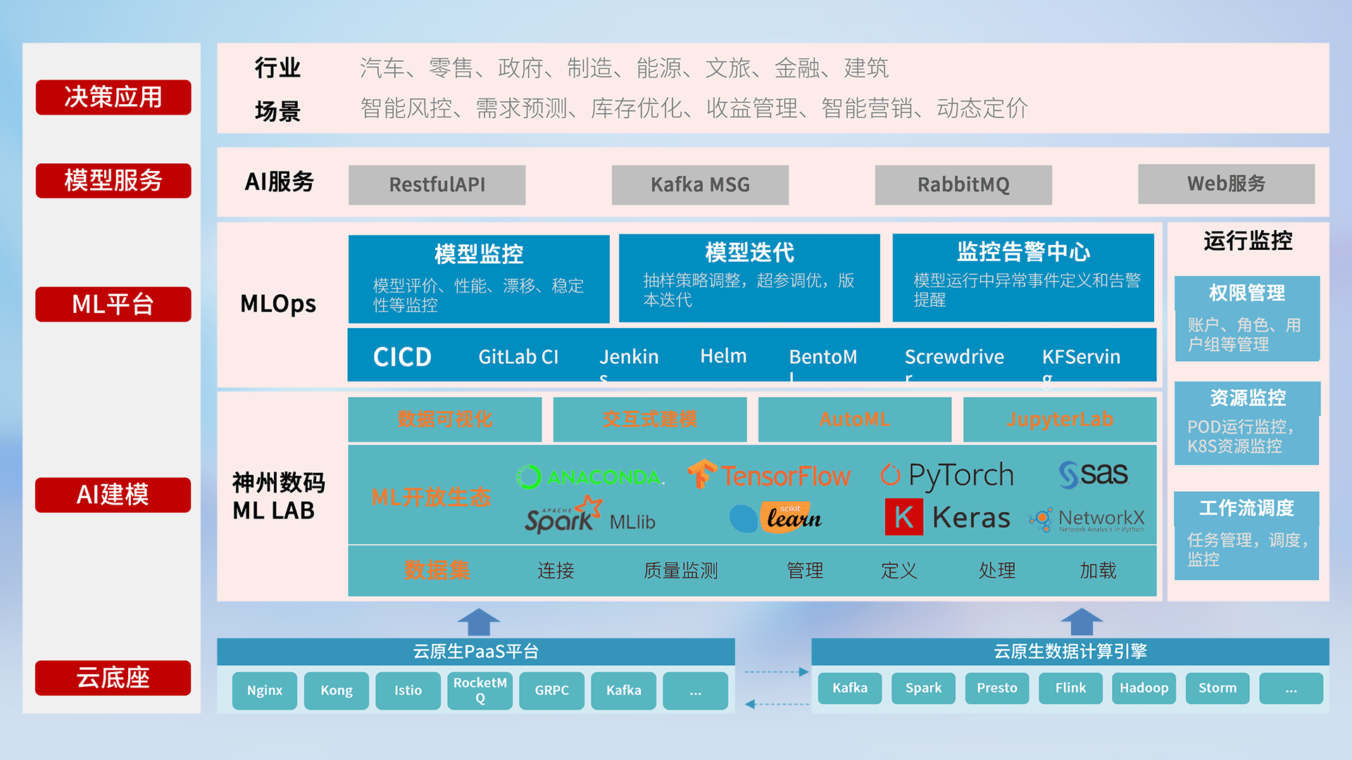 数据+模型双引擎驱动,,,,面向智能服务场景,,,快速灵活利用AI技术,,,,支持业务决策,,助力企业智能化转型破局。。