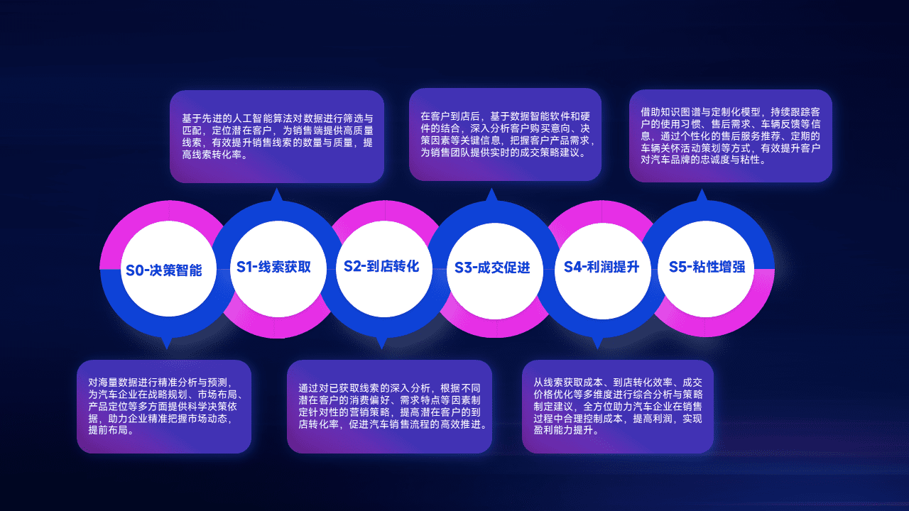 通过拓宽潜在客户来源、、优化线索分配并提高到店转化率,,,,以增强销售效率。。。。同时,,利用线索数据不断优化分析模型,,有效提升转化率,,扩大营销影响力。。。